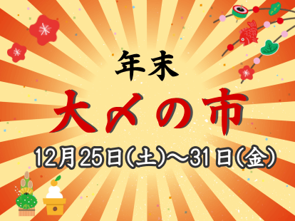 12月25日(土)~31日(金)の7日間(※31日は午後2時閉店)、夢大地館にて年末大売出しを開催します!